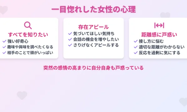 一目惚れした女性の心理は、好みの男性に出会った瞬間に、強い感情に駆られることが特徴です。